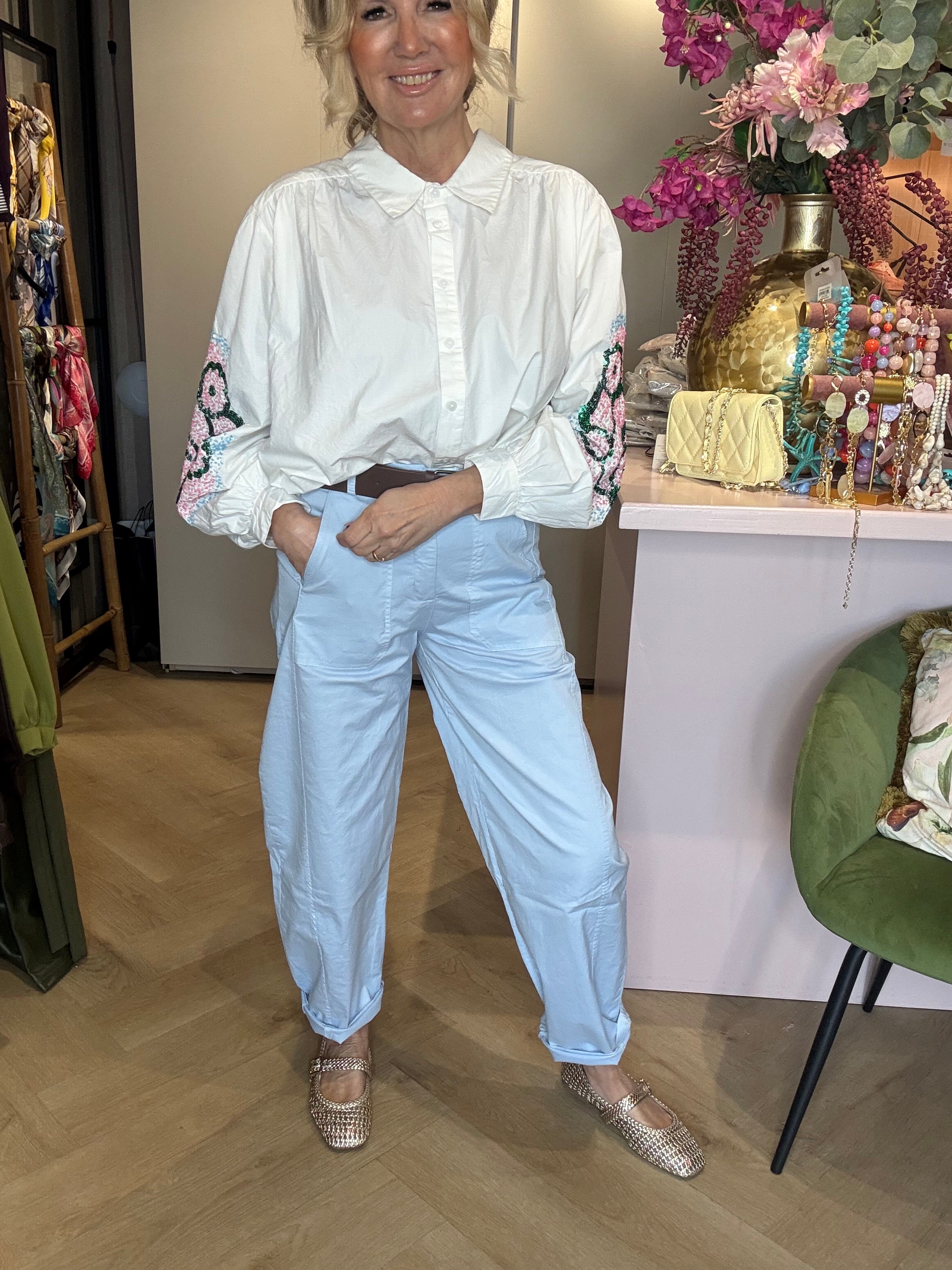 Barrel-jeansen er kendt for sin perfekte pasform og dejlige stretch, som gør, at den sidder som støbt på næsten alle. Vi har tidligere haft den i lyse og mørke jeansudgaver, og nu findes den i denne stilfulde, sommerlige nuance. Den fås også i hvid.