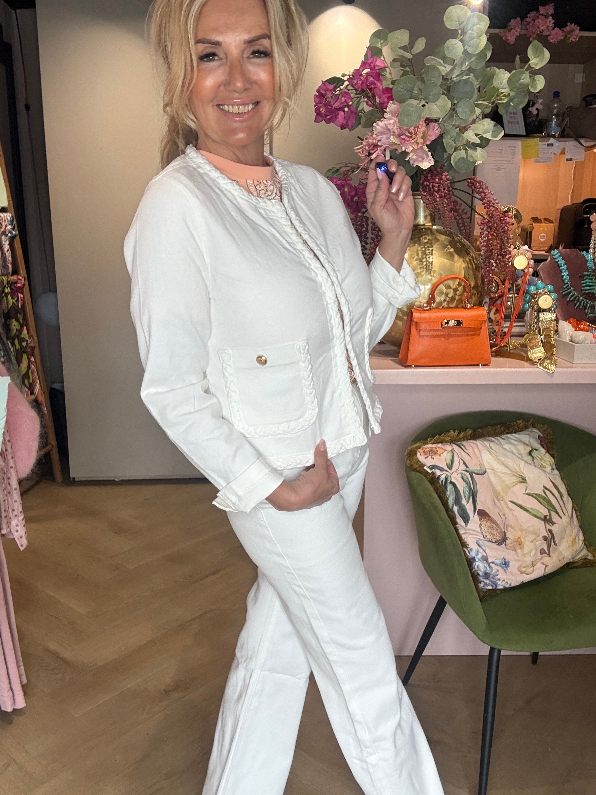 Lo hemos combinado aquí con el pantalón globo amarillo mantequilla, los bailarinas trenzados marrones y el chaleco de mohair en amarillo mantequilla para un look elegante, suave y ton sur ton ✨