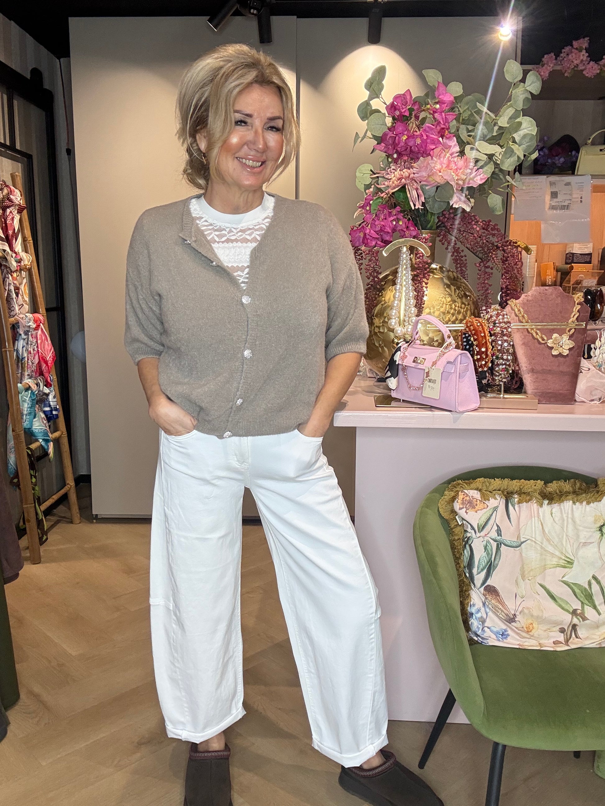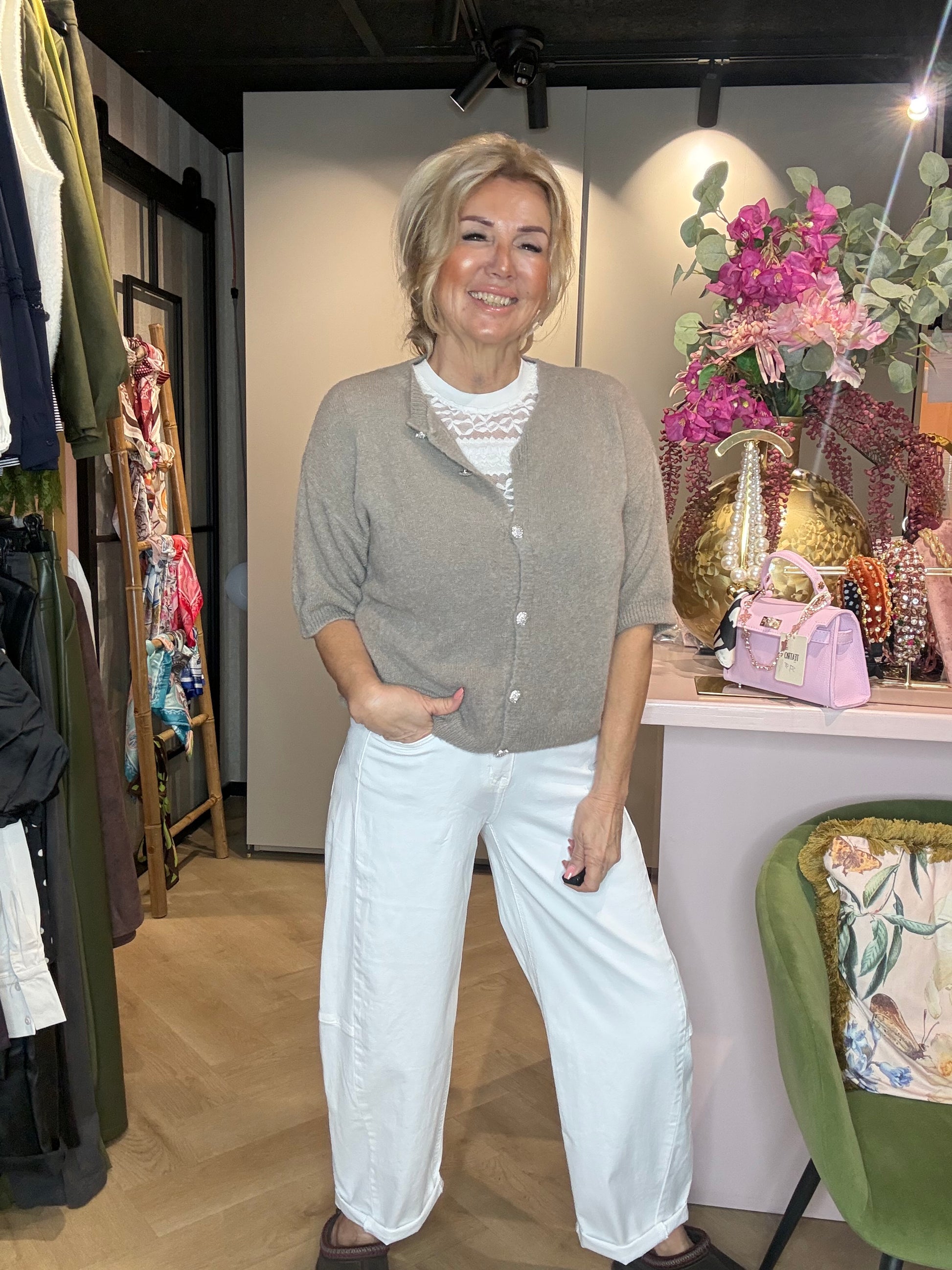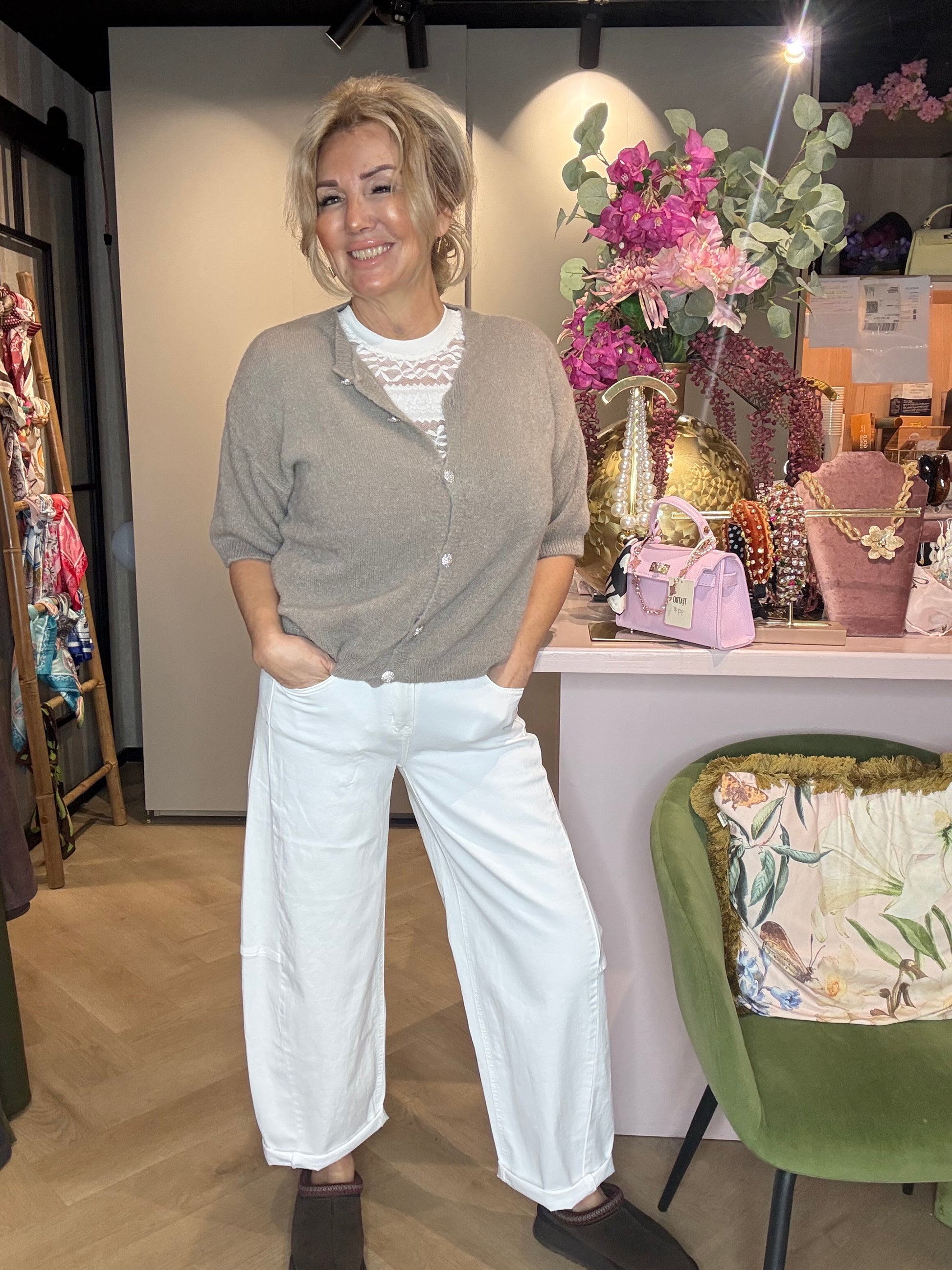 We hadden deze bestseller eerder al in beige in een mooie zomerse tint en nu is hij er ook in dit frisse, chique wit — perfect voor het voorjaar en de zomer.