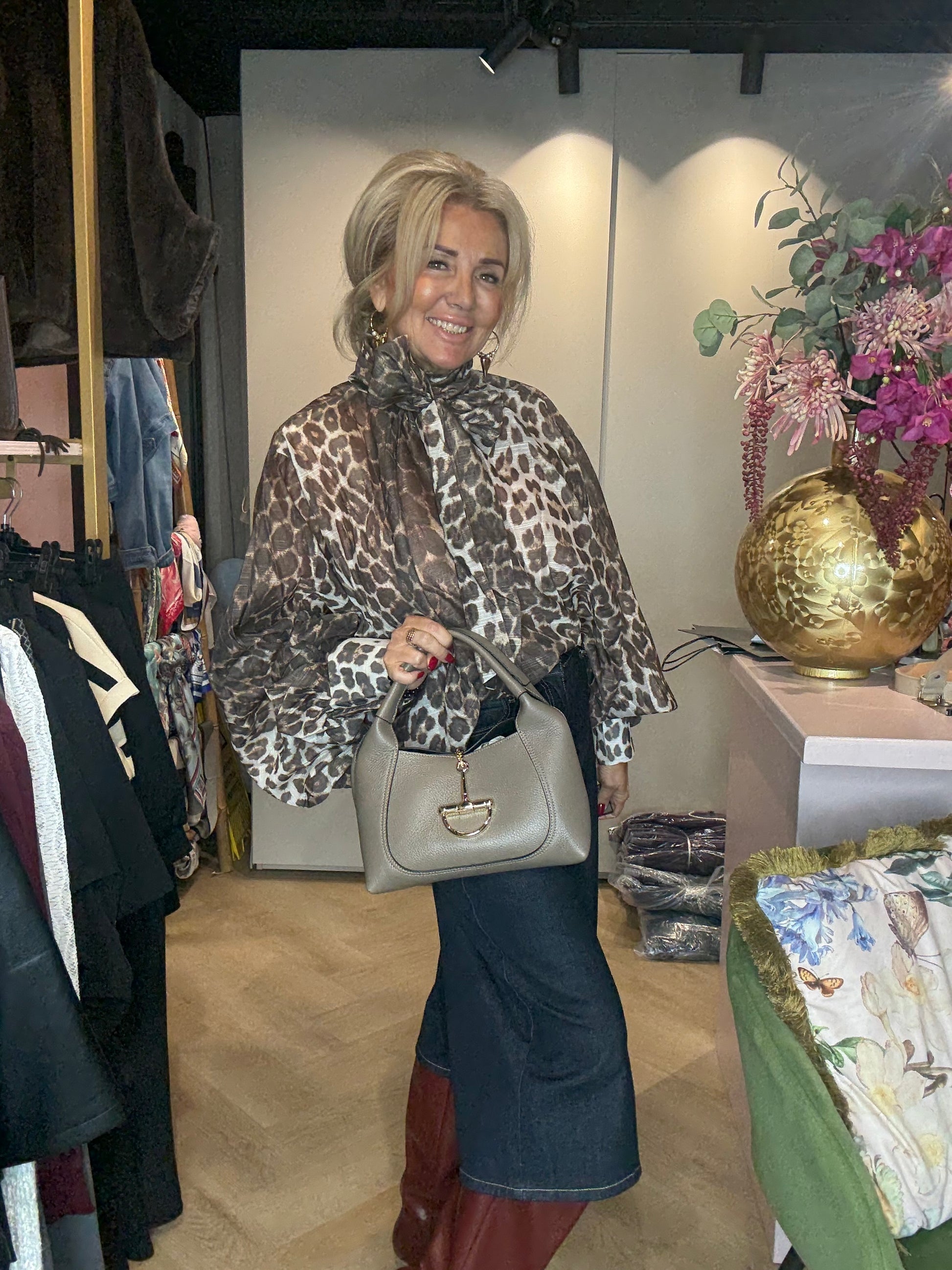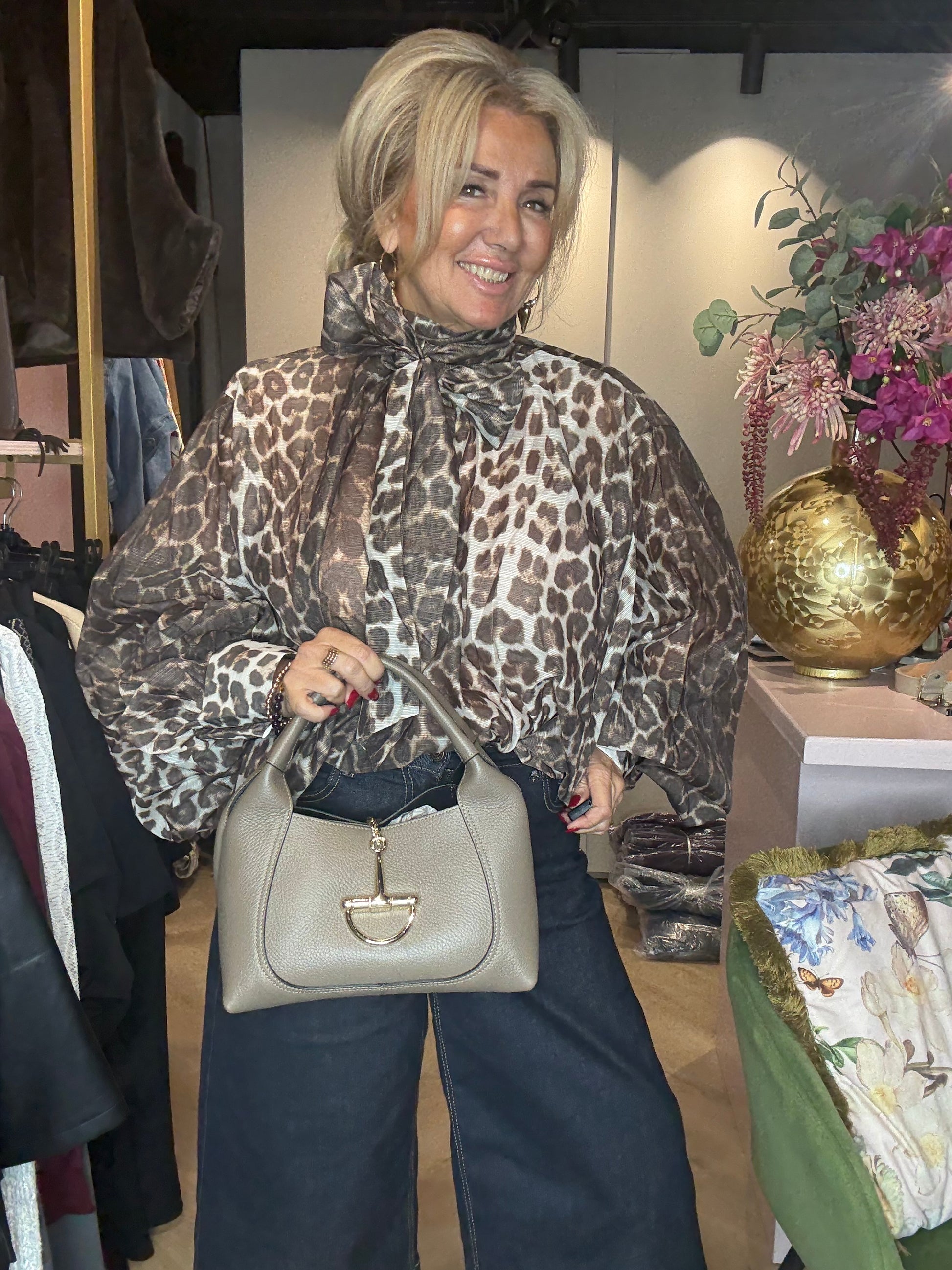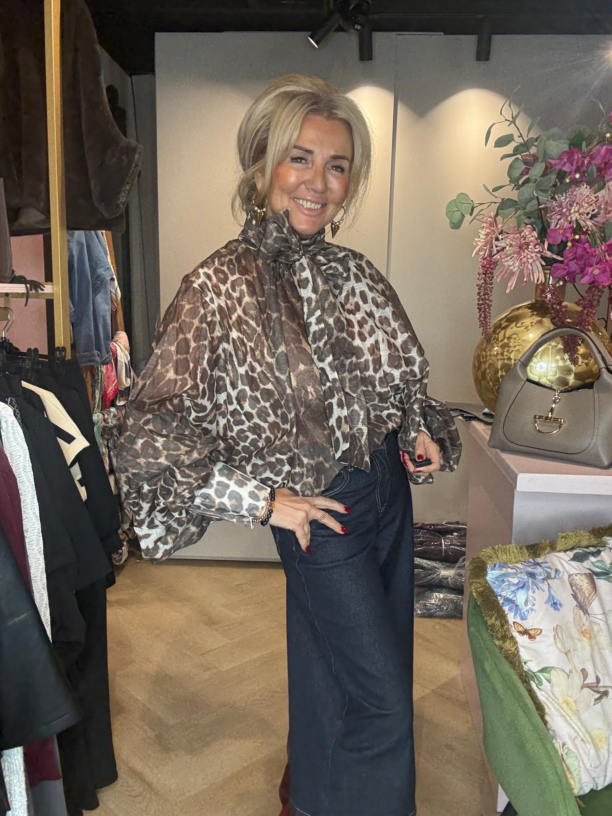 Deze panter blouse is een echte eyecatcher en ademt elegantie met een vleugje lef. 🐆 Gemaakt van luchtig voile, voelt de blouse heerlijk soepel en luchtig aan. De opvallende strik bij de hals kan stijlvol dubbel omgeslagen worden voor een chique effect, terwijl de royale vleermuismouwen en lange manchetten zorgen voor een speelse, vrouwelijke uitstraling.