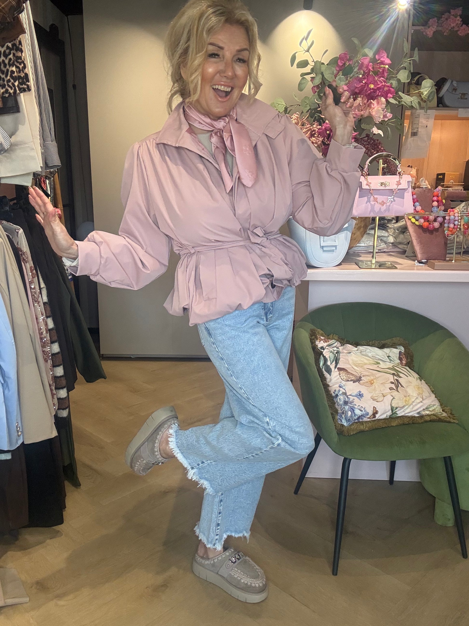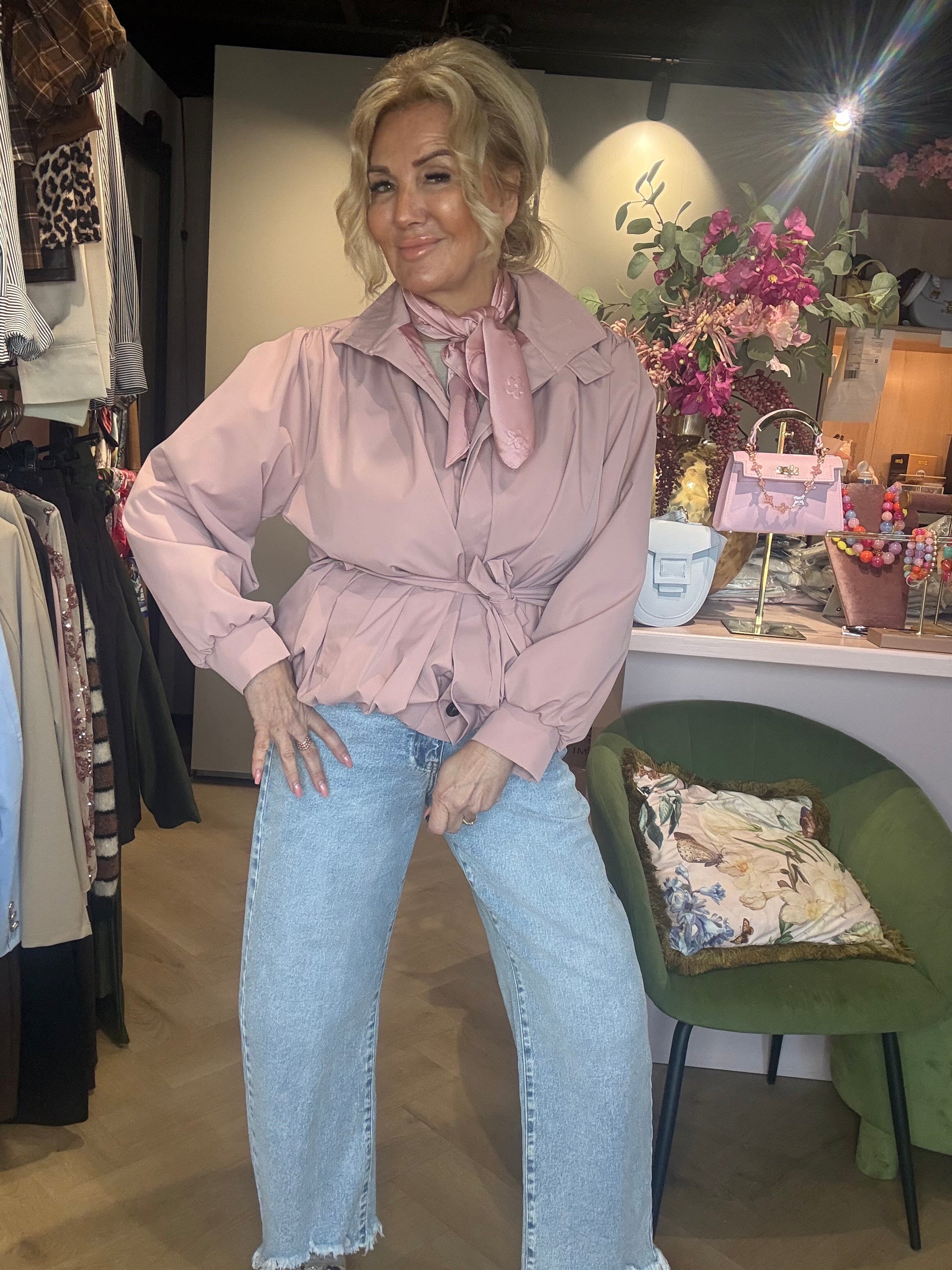 Het ballon barrel model is dé silhouet-trend van dit moment. Rond, speels, modern — en in deze zachte poederroze tint krijgt het jasje een vrouwelijke, frisse uitstraling die je outfit direct een upgrade geeft.