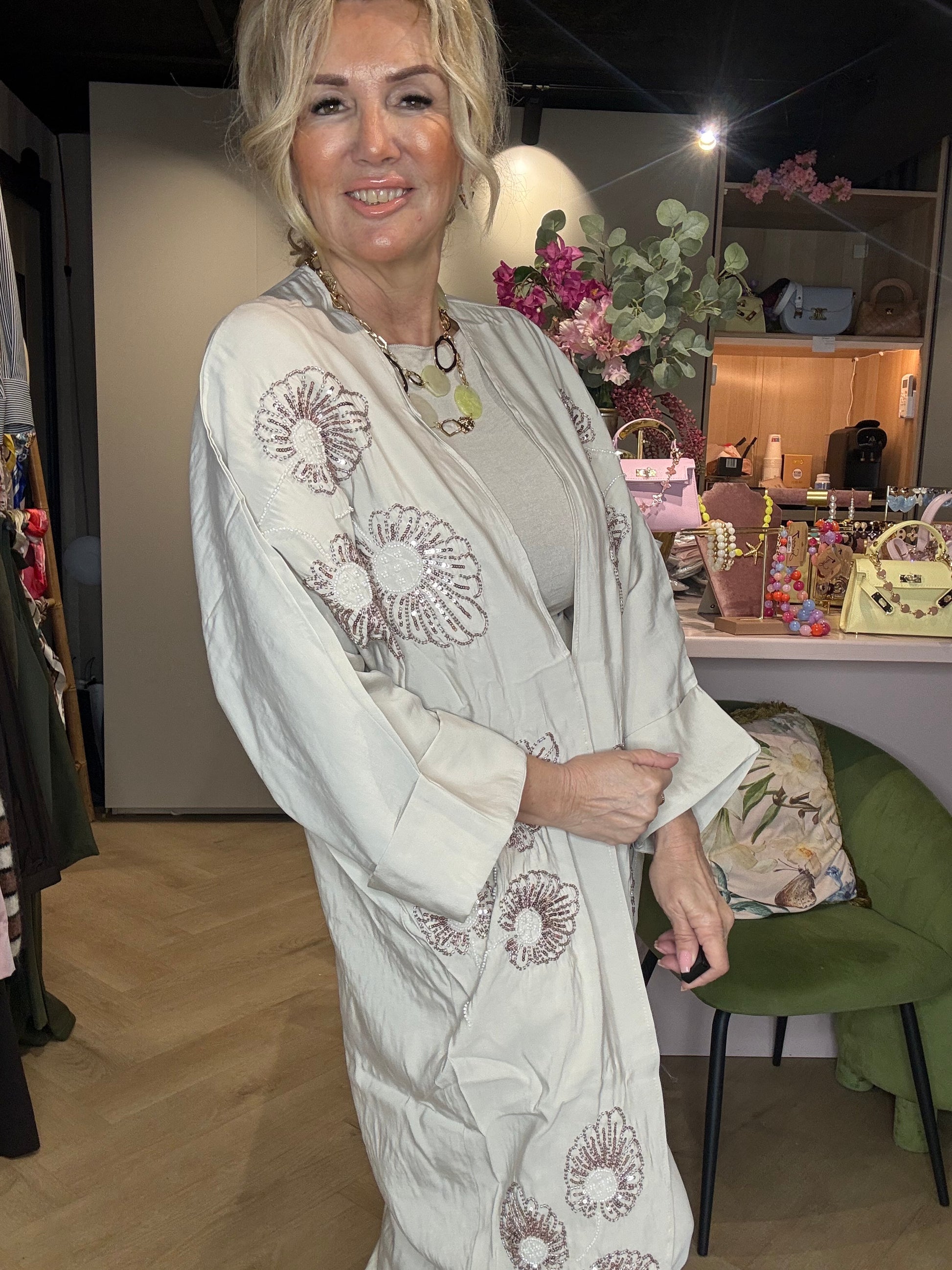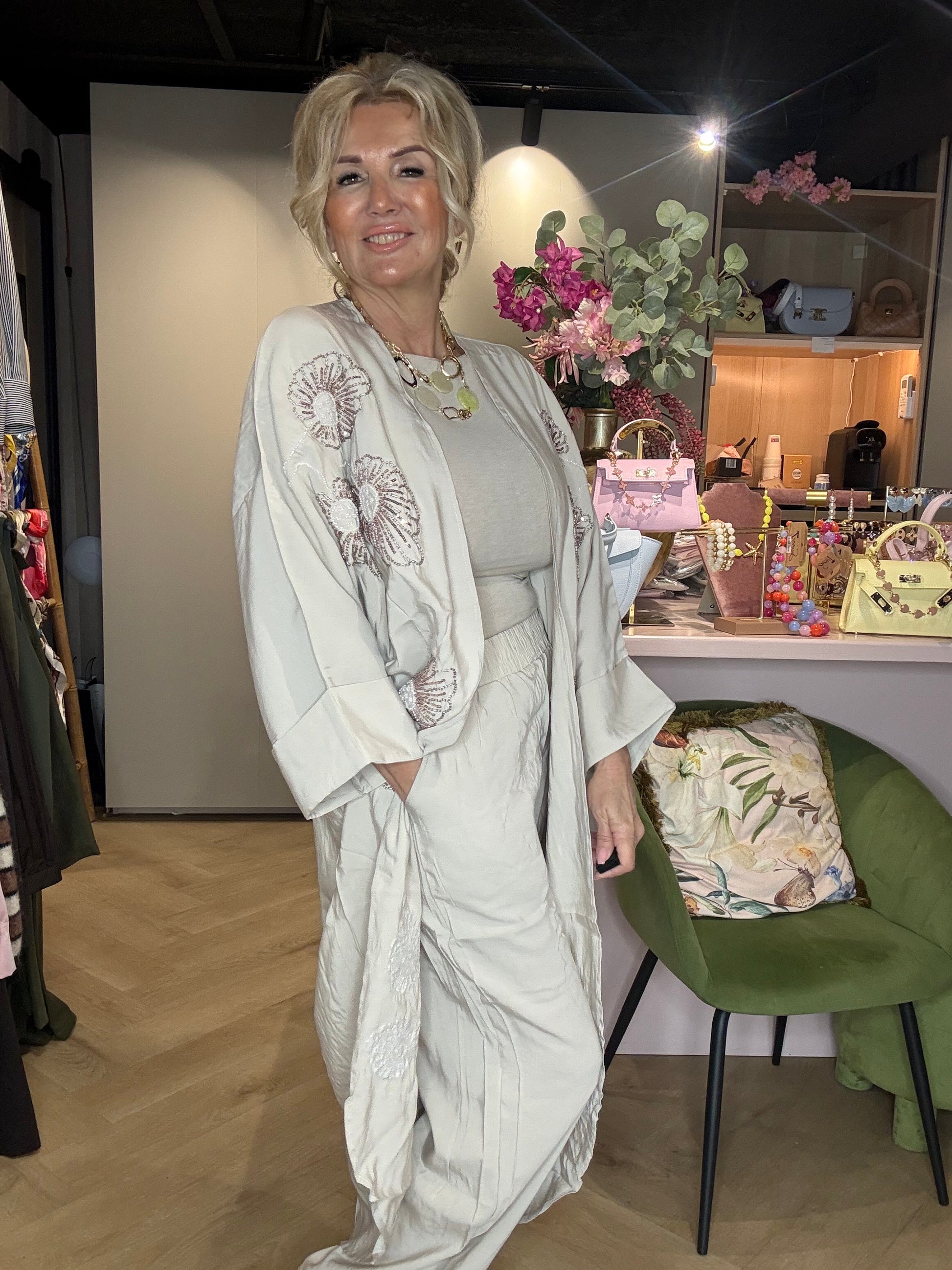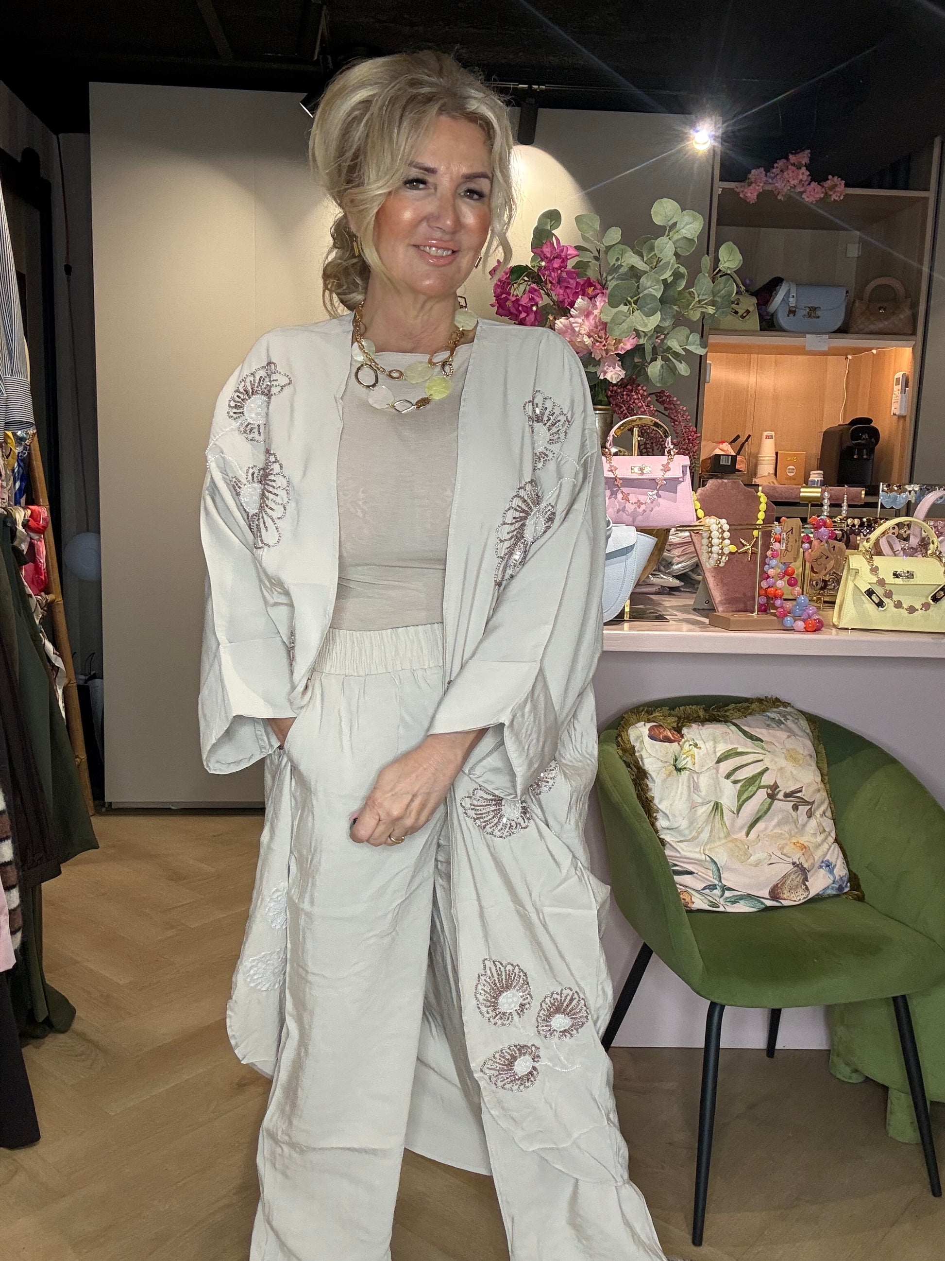 🌸 Tweedelige set: lange kimono + pantalon