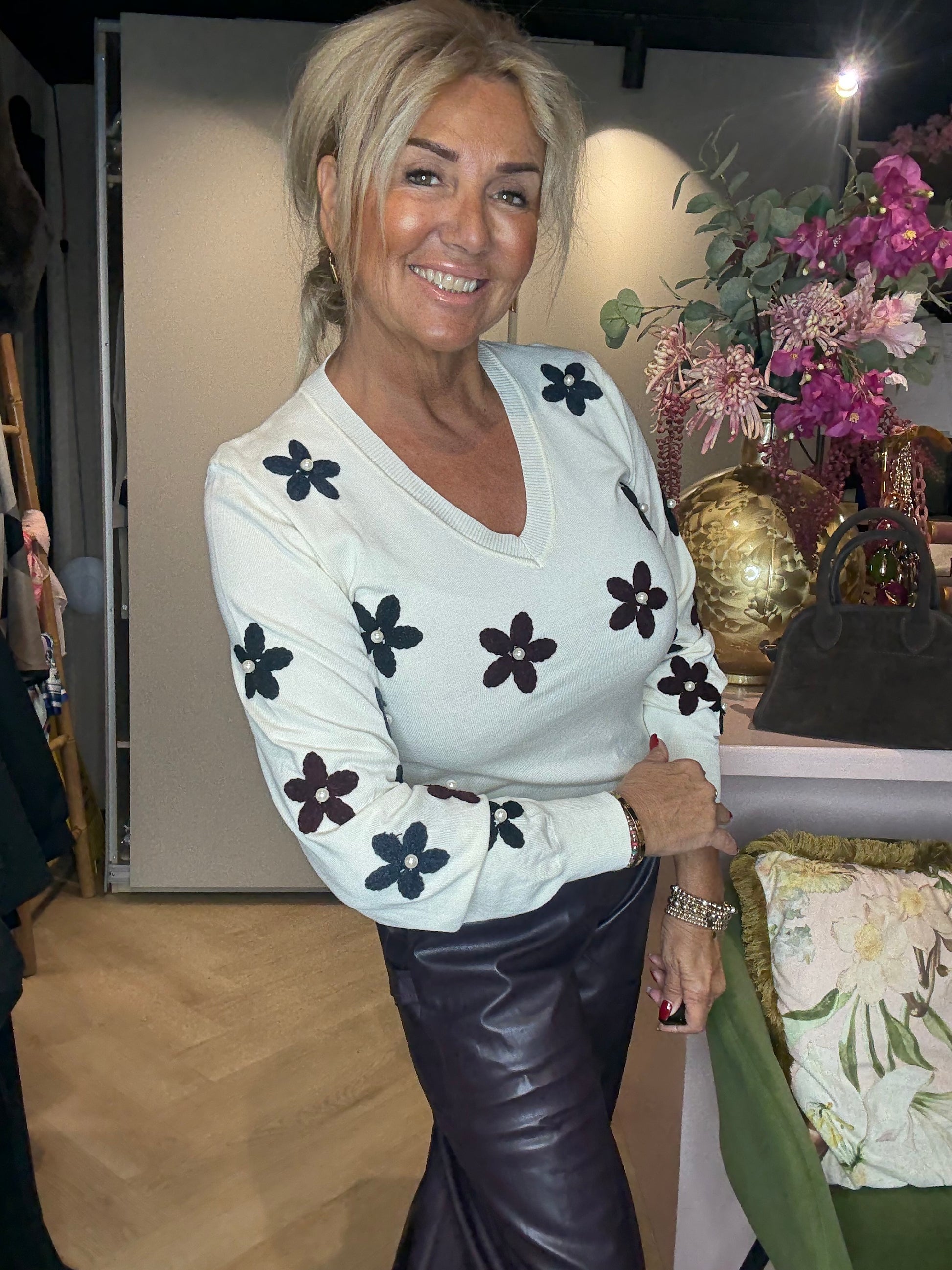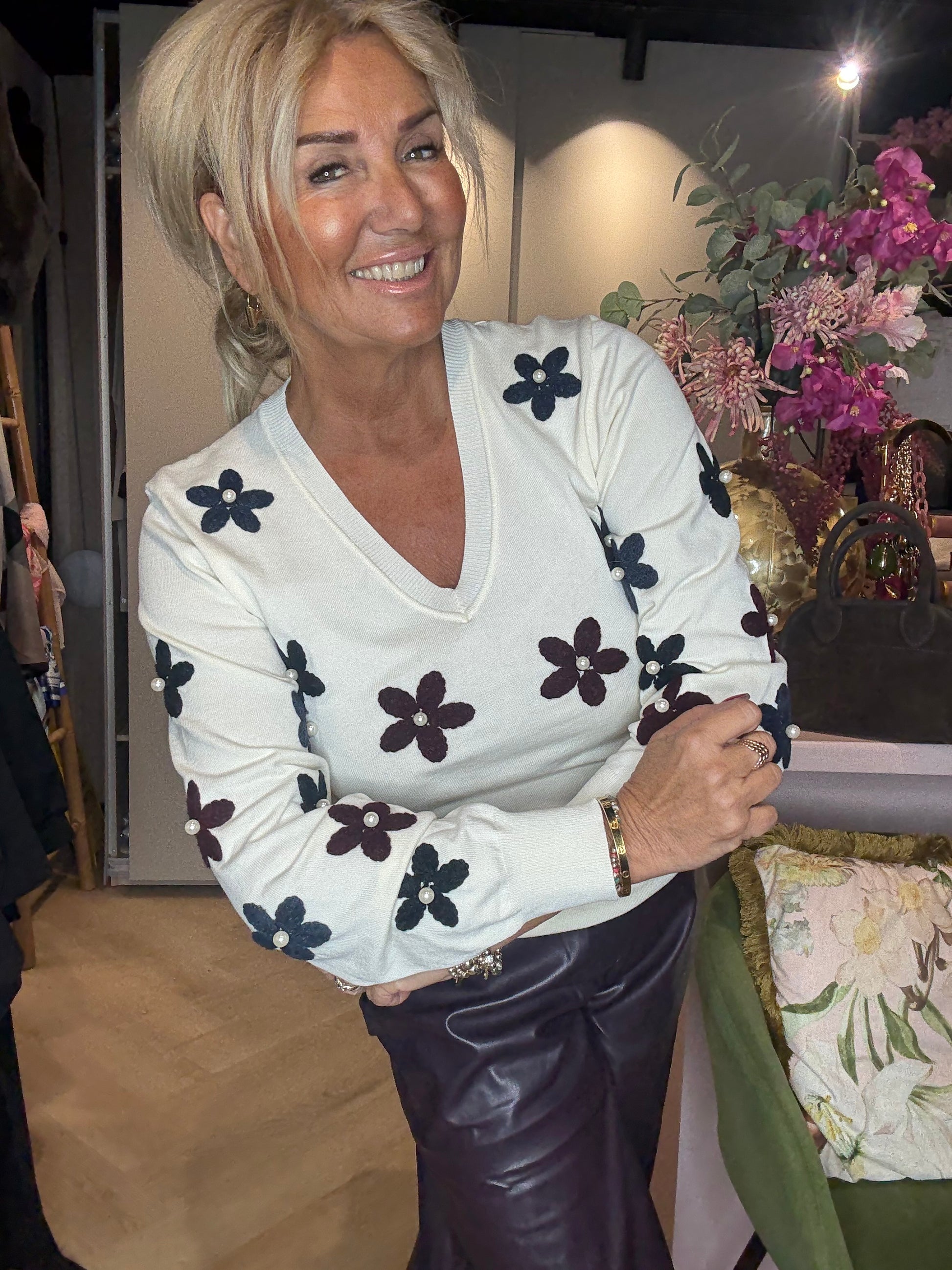 Mi Piace MP202699 Trui Bloem Pearl Off White
