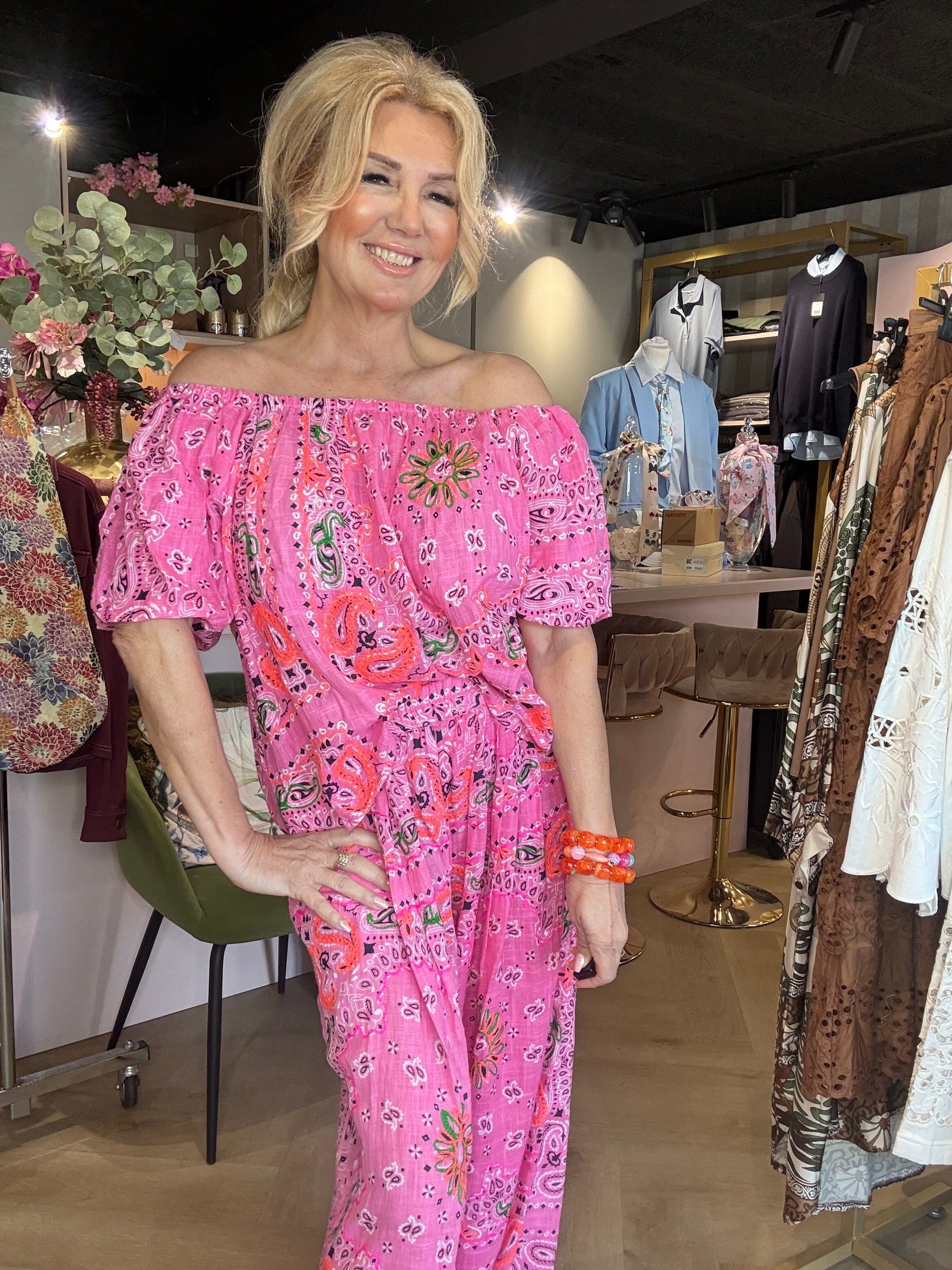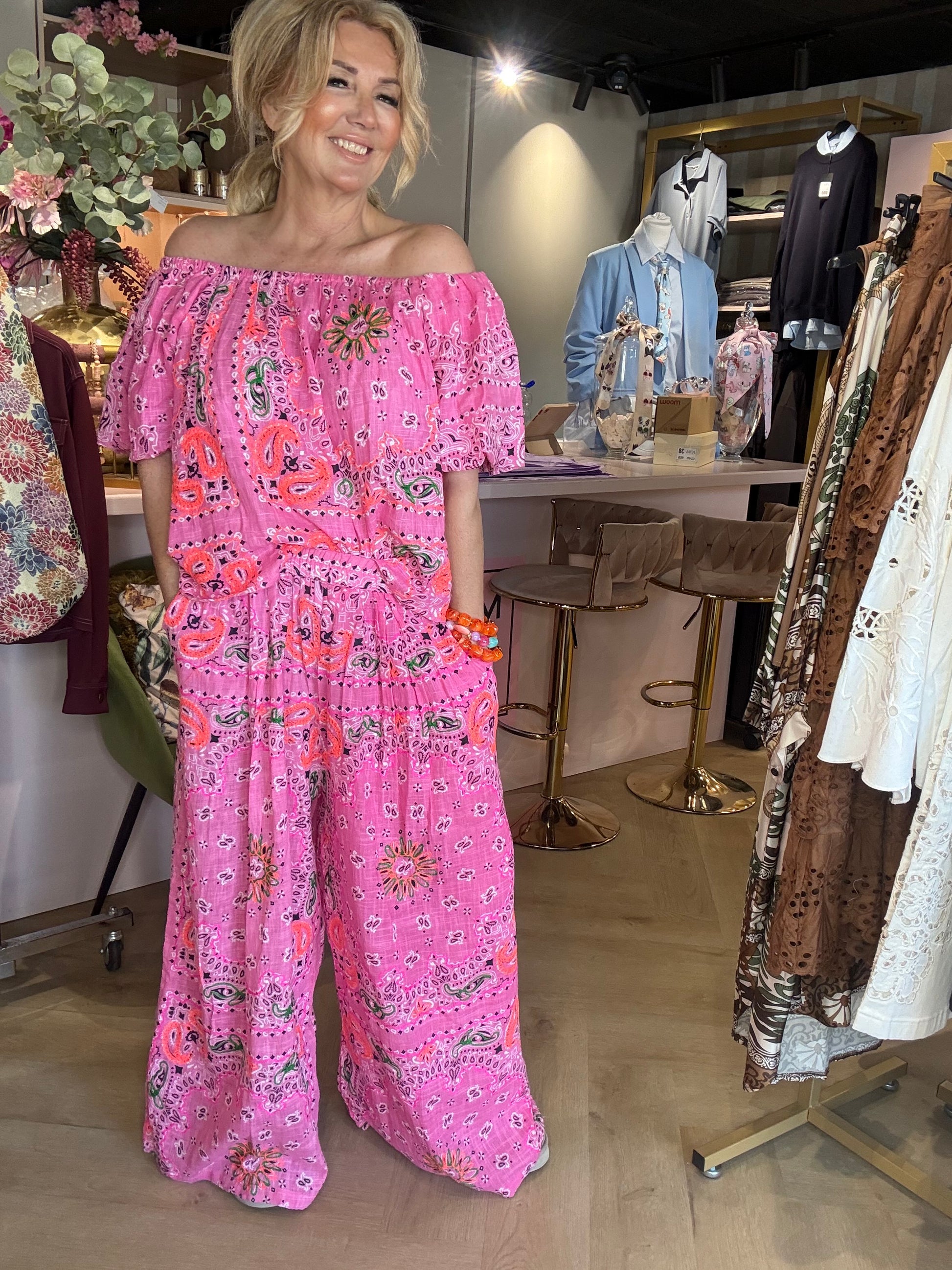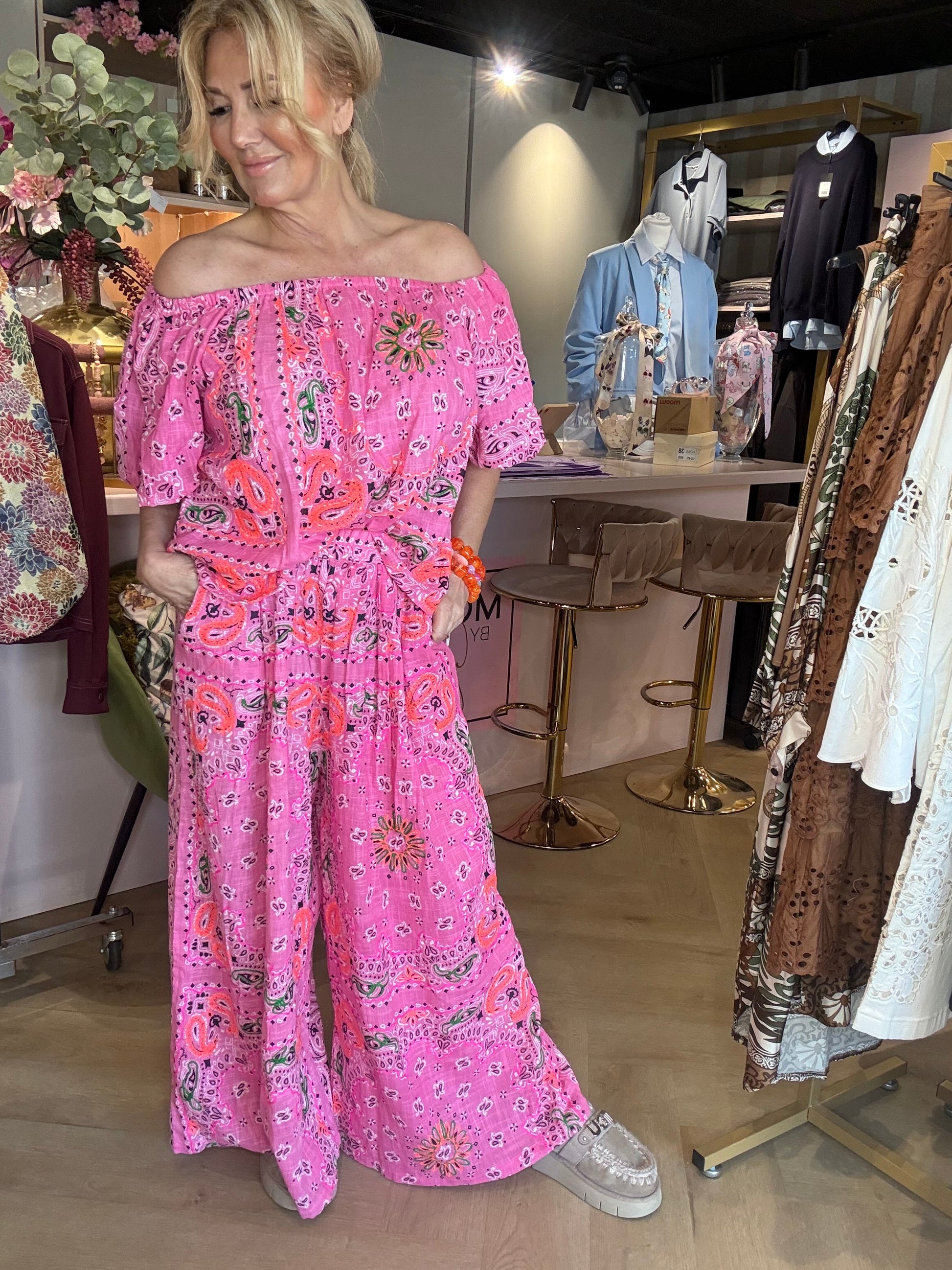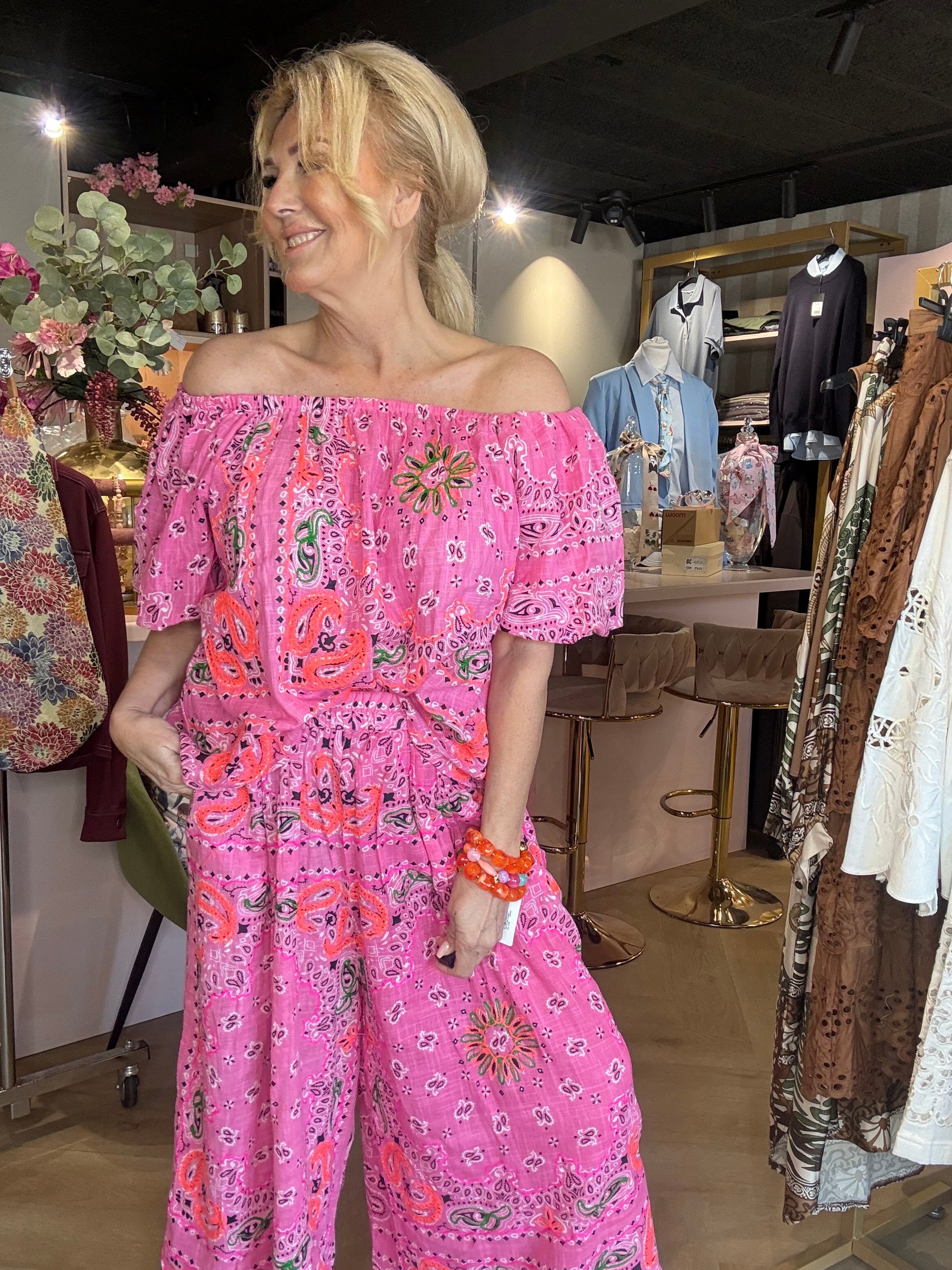 Wauw… dit is echt zo’n set waar je spontaan verliefd op wordt 😍 De bekende bandana (paisley) print geeft deze outfit die heerlijke boho en zomerse uitstraling waar we allemaal naar op zoek zijn 🌸✨