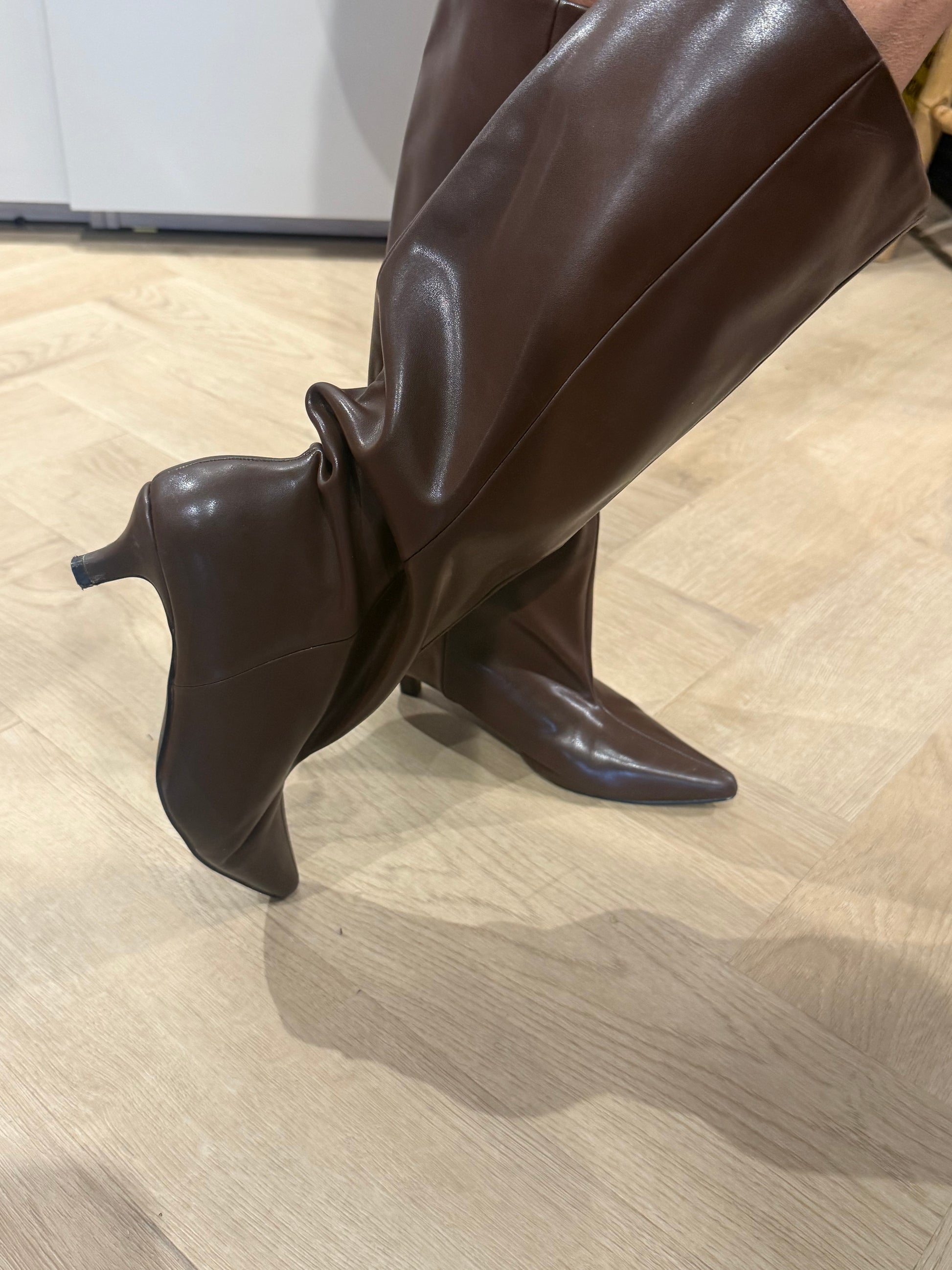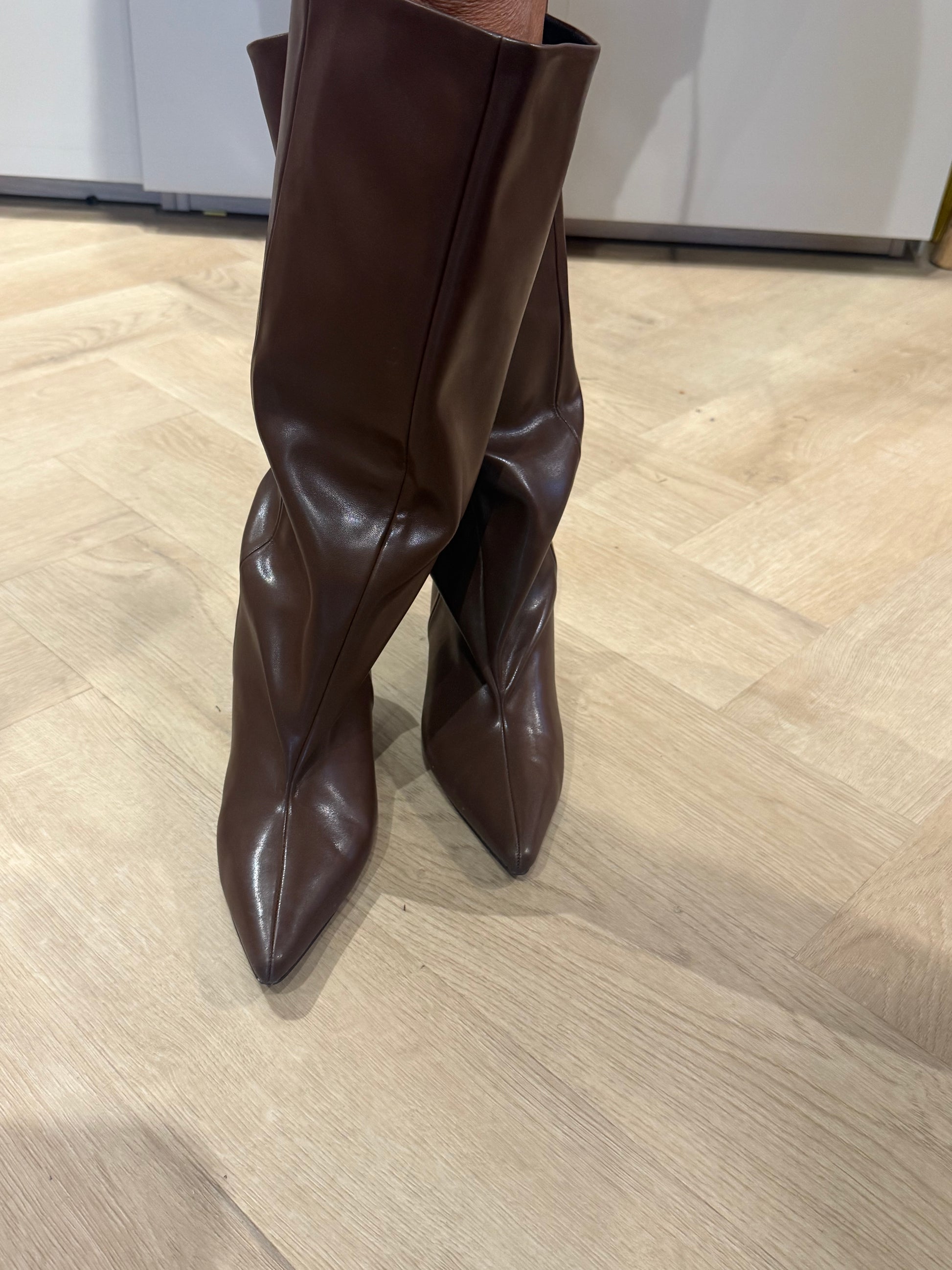 De warme bruintint maakt deze laars perfect voor het najaar en moeiteloos te combineren met jurken, rokken of een stijlvolle pantalon.
