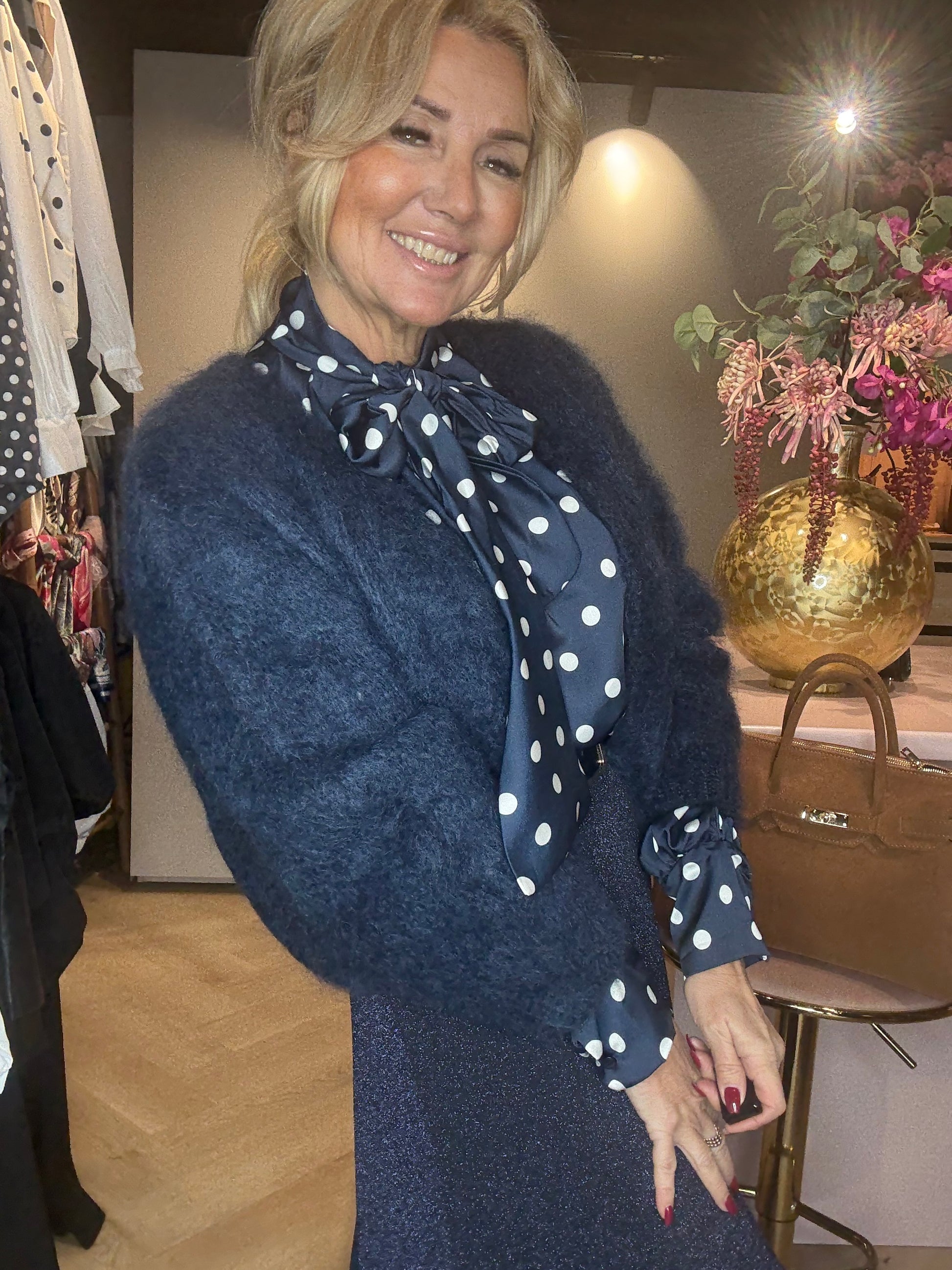 Wauw… wat een plaatje! Dit volle, rijke Mohair vest in een diepe dark blue tint is een absolute must-have voor jouw garderobe. Met maar liefst 85% zacht Mohair voel je direct hoe luxe dit vest is: warm, fluffy, elegant en toch heerlijk licht om te dragen. Het geeft elke outfit een stijlvolle, chique uitstraling.