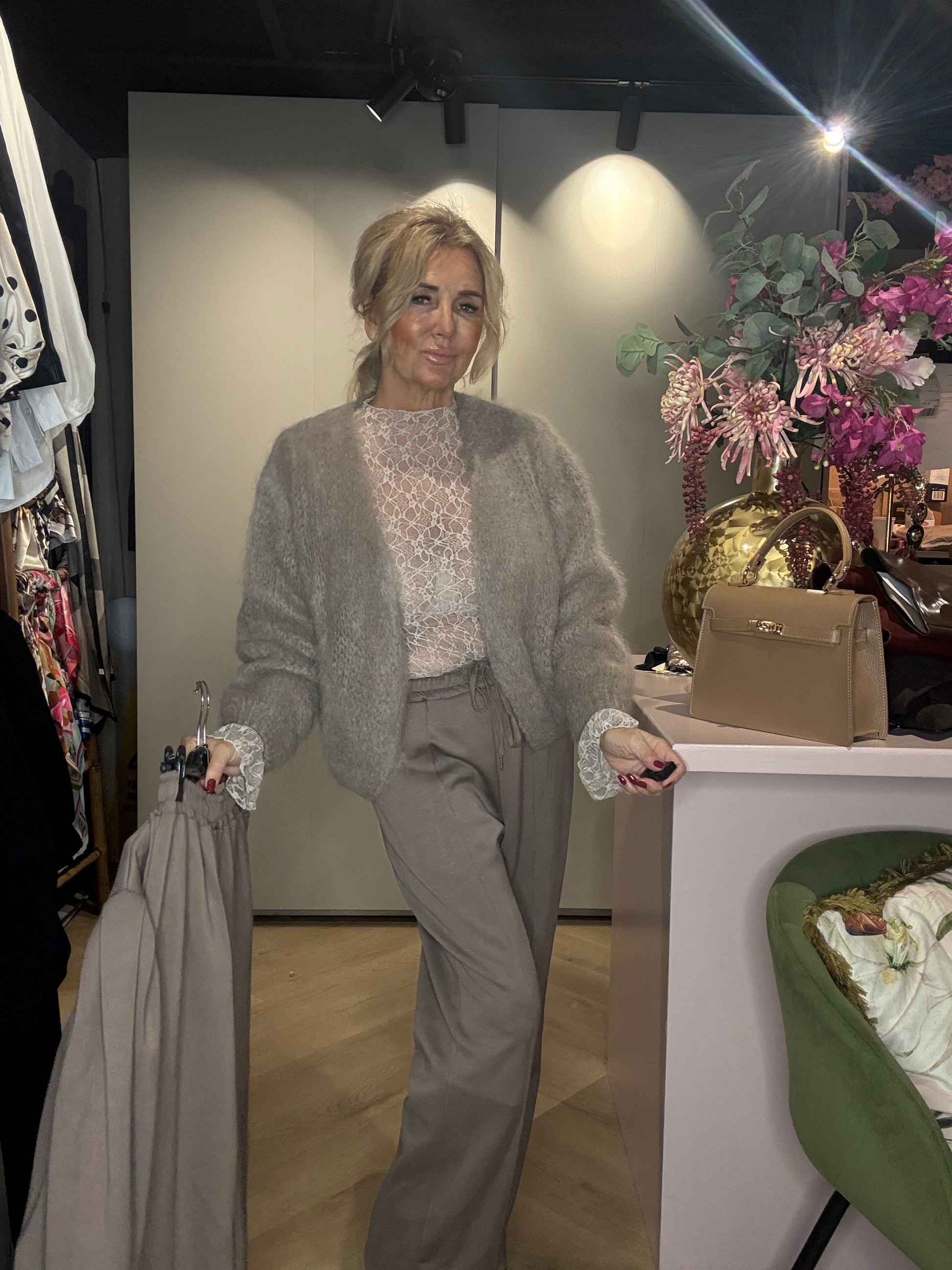 Wauw… dit is écht een topper in onze collectie! Een prachtig, hoogwaardig mohair vest in de warme, stijlvolle kleur taupe. Zodra je hem ziet én voelt, weet je het meteen: dit is pure luxe.