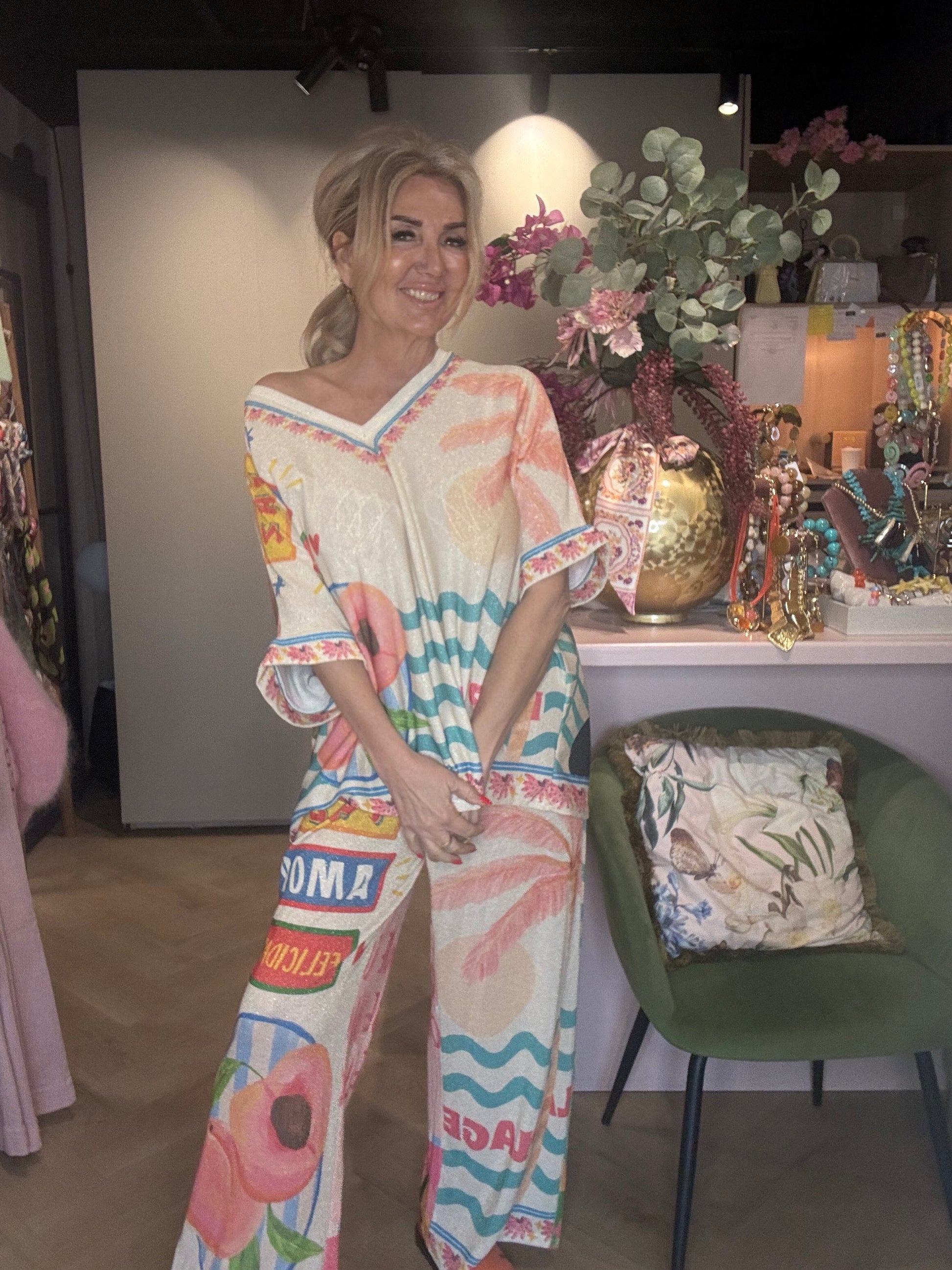 De combinatie van pastelkleuren, verfijnde prints en dat subtiele lurex gouden shimmerdraadje zorgt voor een luxe en zomerse uitstraling. Perfect voor een dagje shoppen, terras, vakantie of een zomerse avond ✨