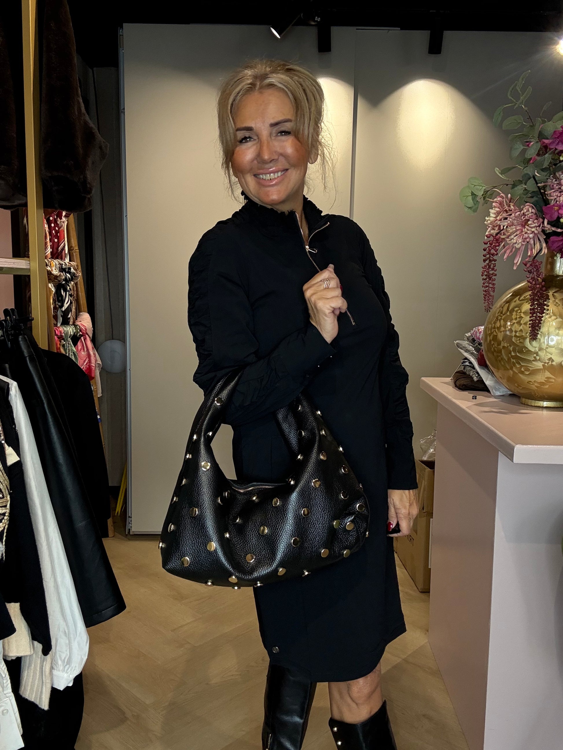 Triple Nine Jurk JK51815 Long Sleeves Smoked Shoulder - Zwart