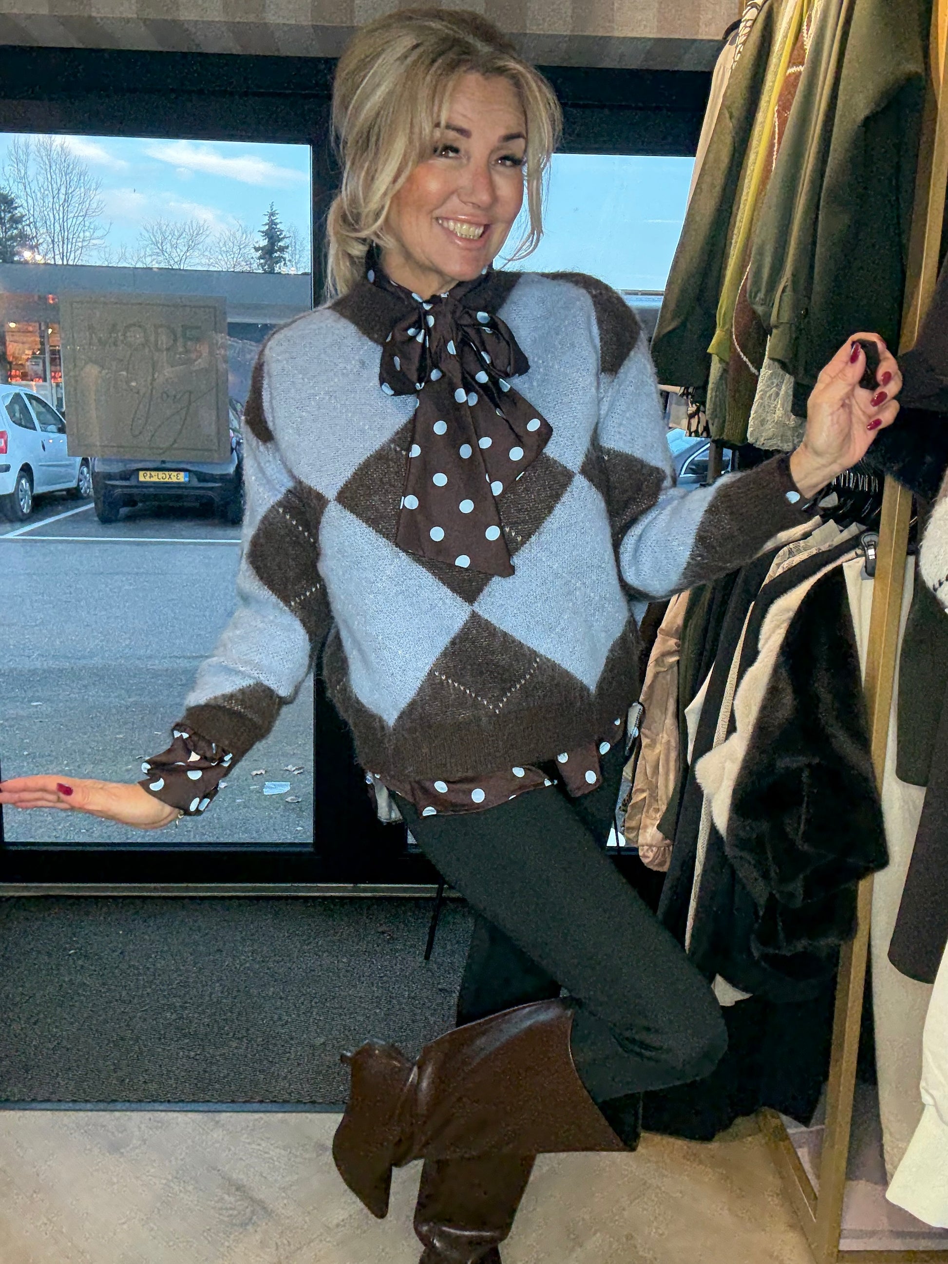 Trui Wiebertje Modern – Donkerbruin & Lichtblauw
