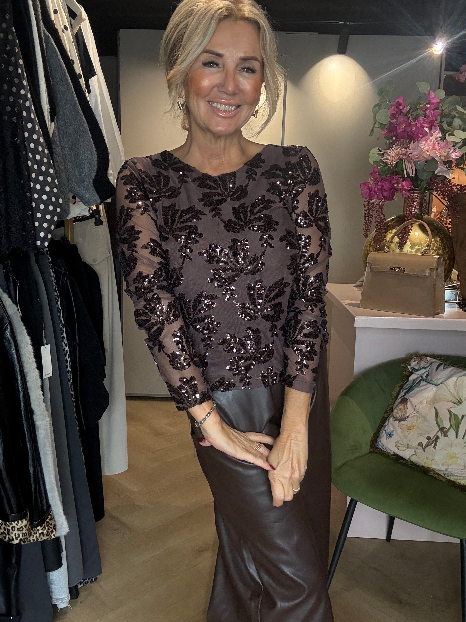 Het Truitje Flower Paillette Bruin is zo’n item waar je meteen verliefd op wordt — stijlvol, vrouwelijk en met een prachtige sparkle ✨🌸